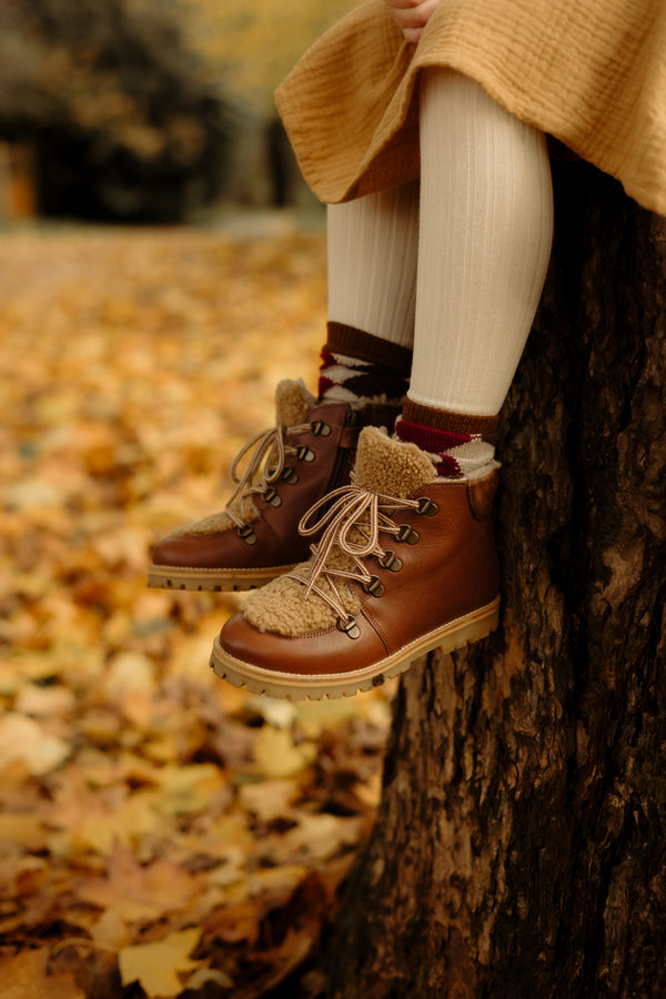 Our TEX Classic Winter boots are made in leather with 100% natural wool lining, keeping little feet toasty and dry during the coldest months.